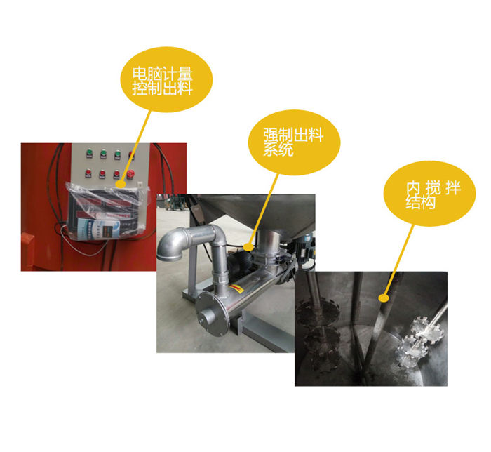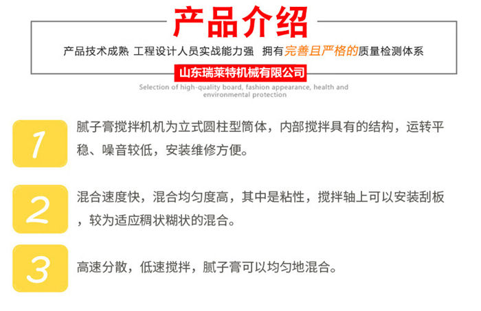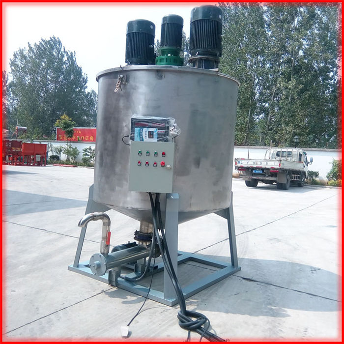 立式膩子膏攪拌機(jī)內(nèi)有高速分散盤,采用高速分散低速攪拌的原理,使物料攪拌較快較均勻,電動出料,輕輕一踩腳踏開關(guān)即可放出攪拌好的物料,內(nèi)加刮板,攪拌葉片與桶壁間隙小,殘留較少,出料較干凈。干粉原材料由螺旋上料機(jī)上料,液體可以由水泵上料,使用方便,大大降低了勞動強(qiáng)度,提升了生產(chǎn)效率。可根據(jù)不同物料的實際需求定制碳鋼及不銹鋼材料。